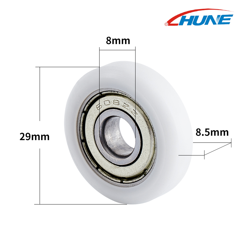 628ZZ F-आकारको फ्ल्याट व्हील प्लास्टिक नायलॉन/Pa/Pu स्टिल विन्डो बियरिङ पुली